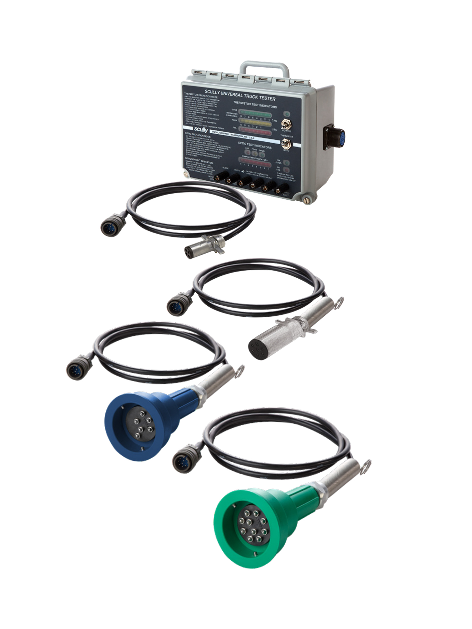 Universaler Scully-Tester für LKWs ist ein modernes Prüfgerät für Tankfahrzeuge. Er dient zur Überprüfung des Flüssigkeitsüberlaufschutzsystems sowie des automatischen Erdungssystems. Eine umfassende Diagnose hilft, Ausfallzeiten und damit Kosten zu reduzieren. Der Tester ist kompatibel mit Scully-Geräten Intellicheck® Load Anywhere®, sowie mit eigenständigen optischen und thermistorbasierten Sensoren von Scully für Tankfahrzeuge.